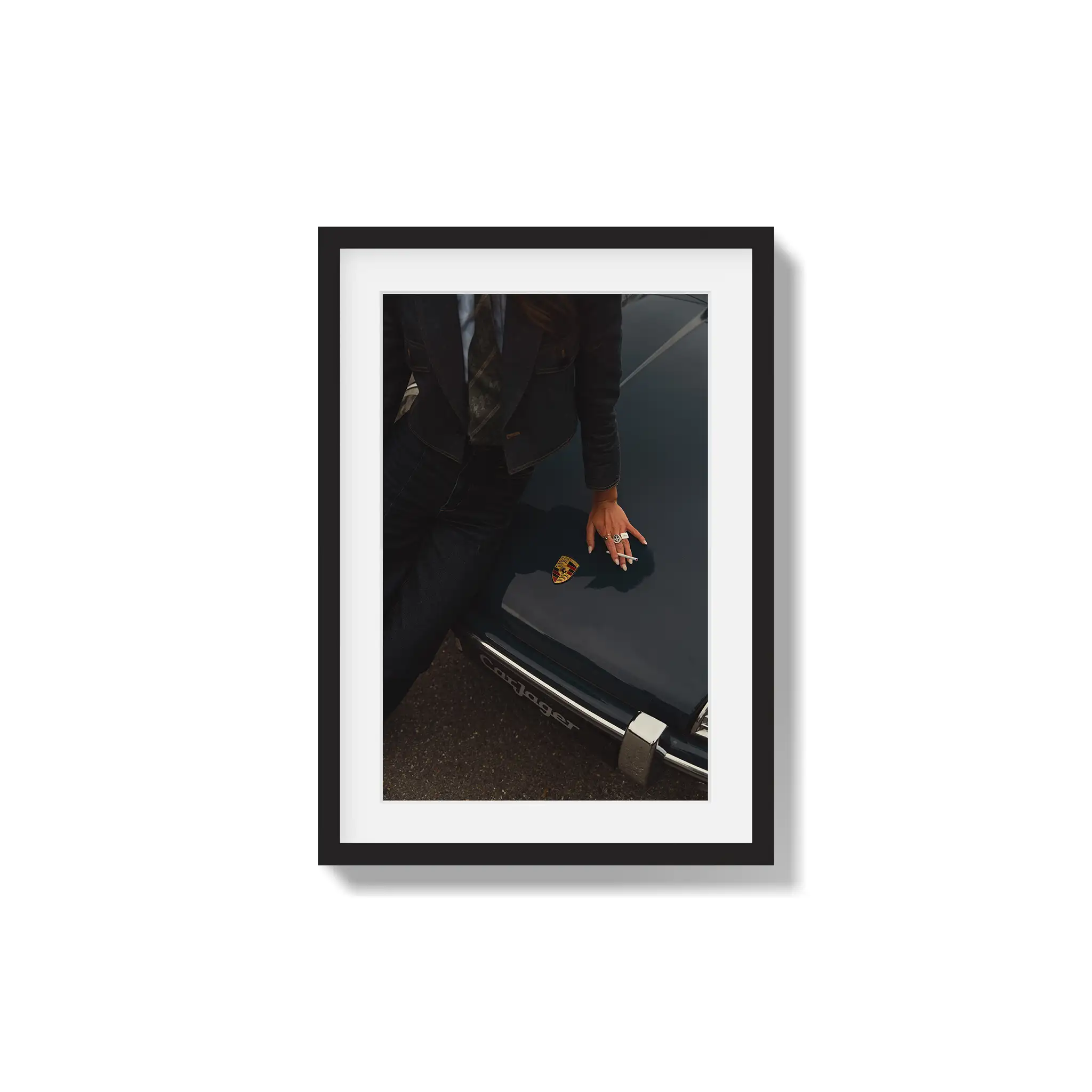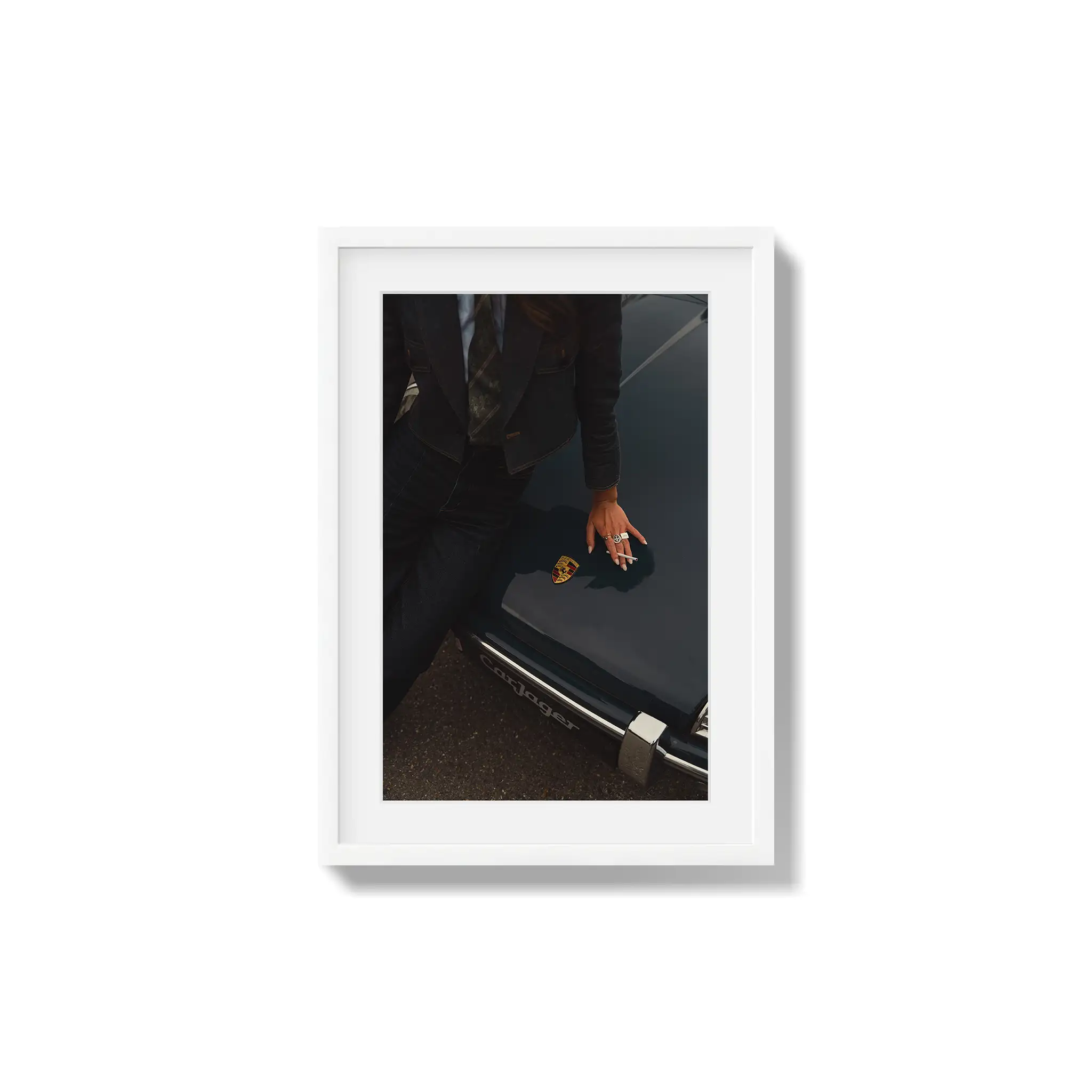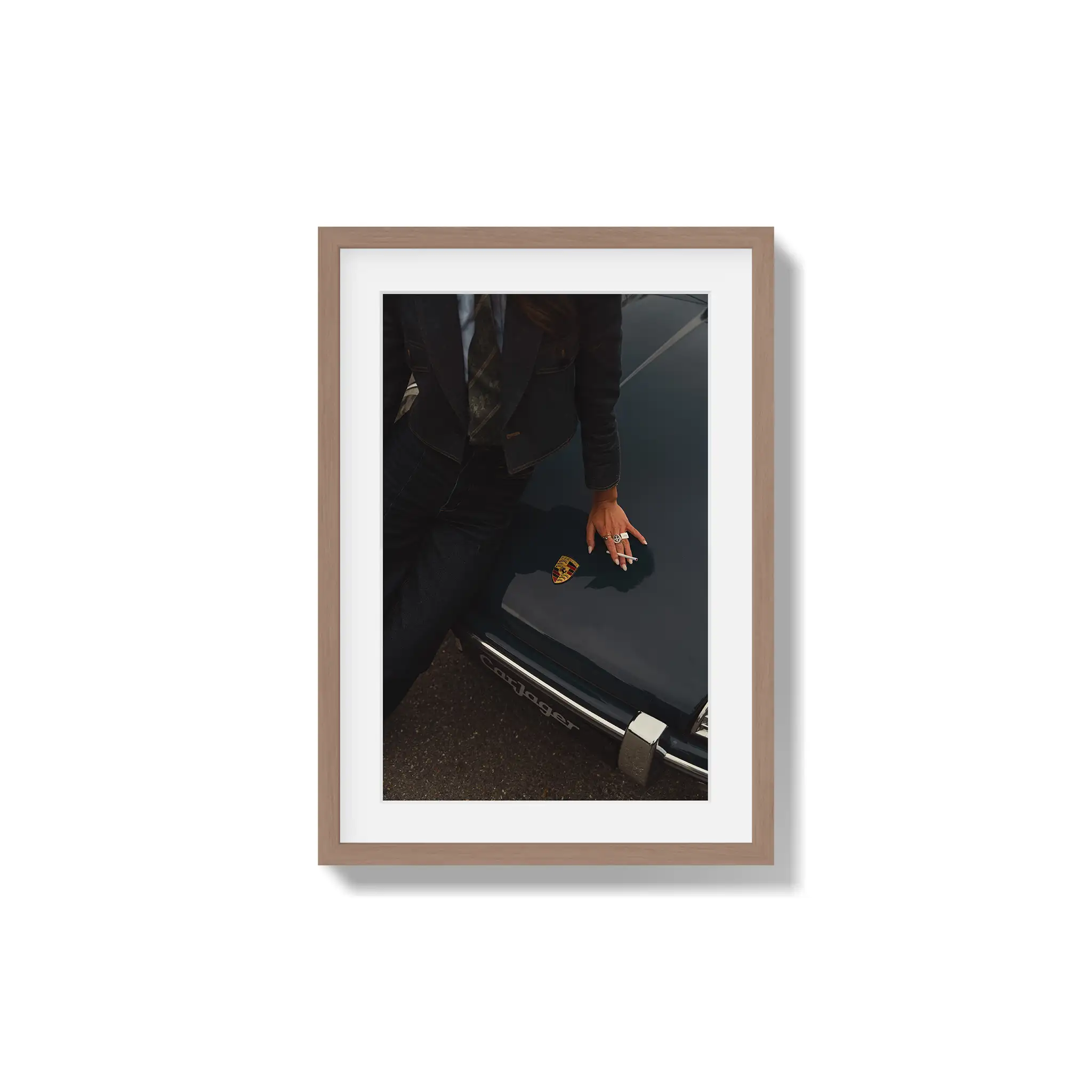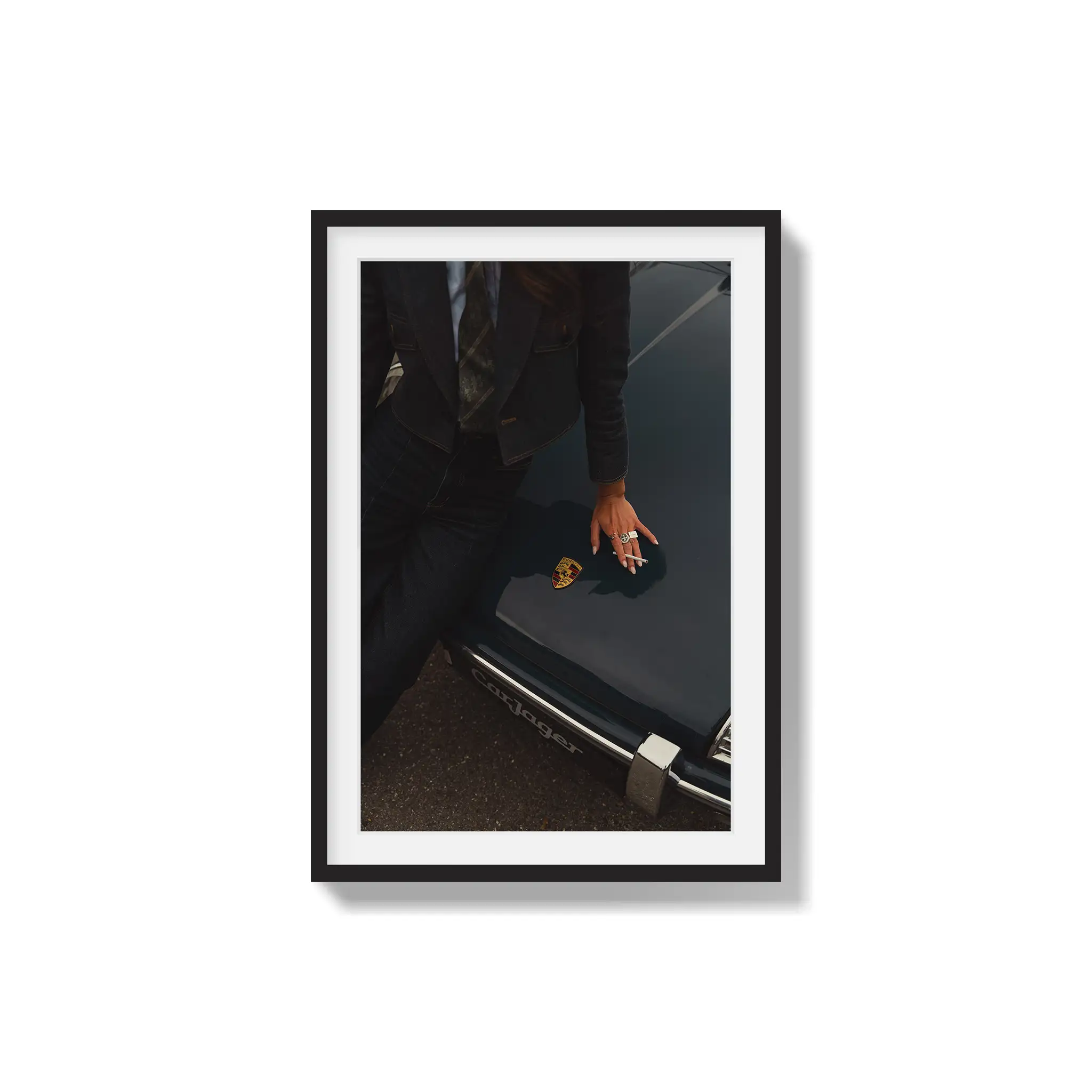 Still, nichts lautes. Der Motor läuft. Die Art von Eleganz, die man nicht anzieht, sondern besitzt. - "French Breakfast" Automobil Kunstdruck des klassischen 911ers von Armand Maertens, gedruckt auf Premium-Papier, ready-to-hang.