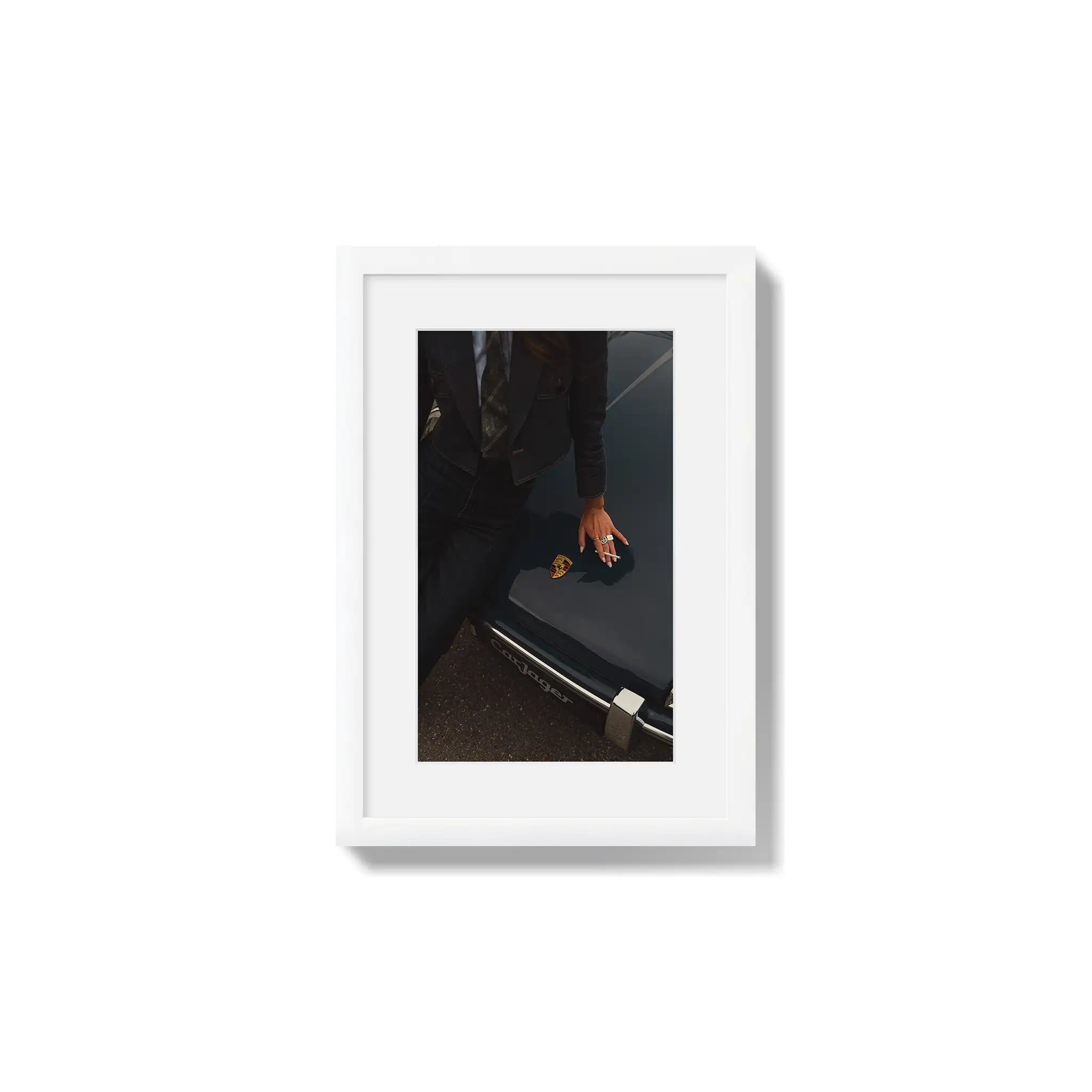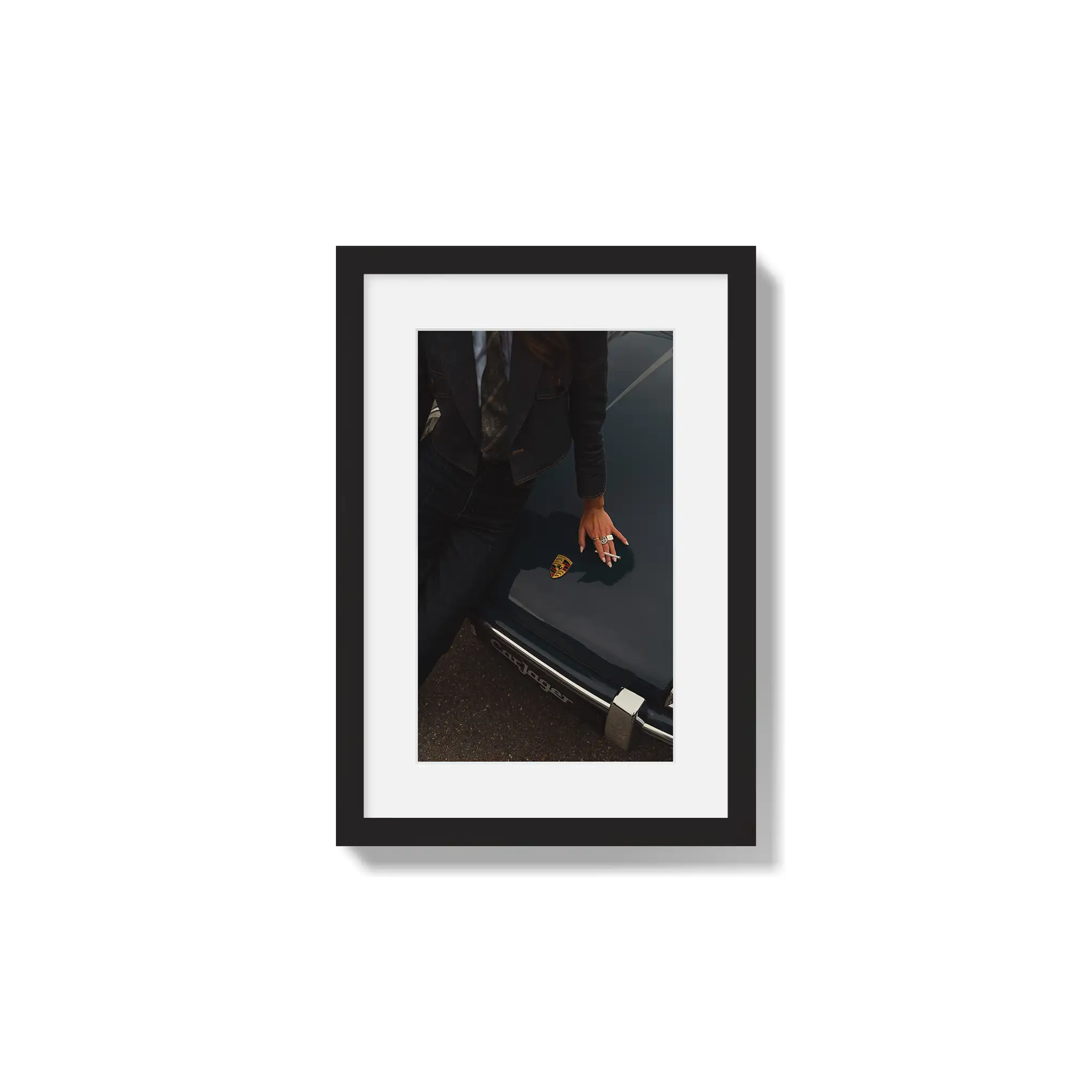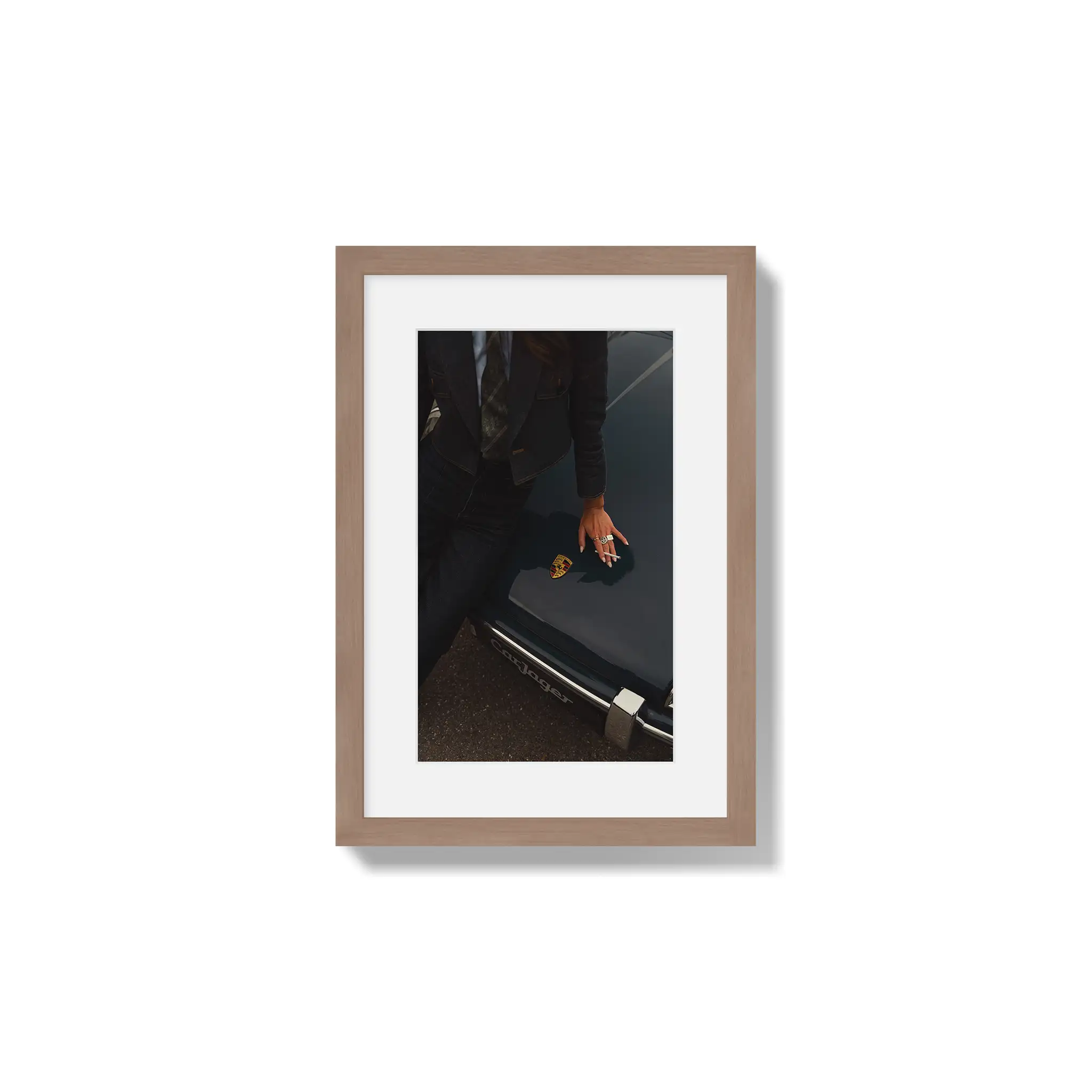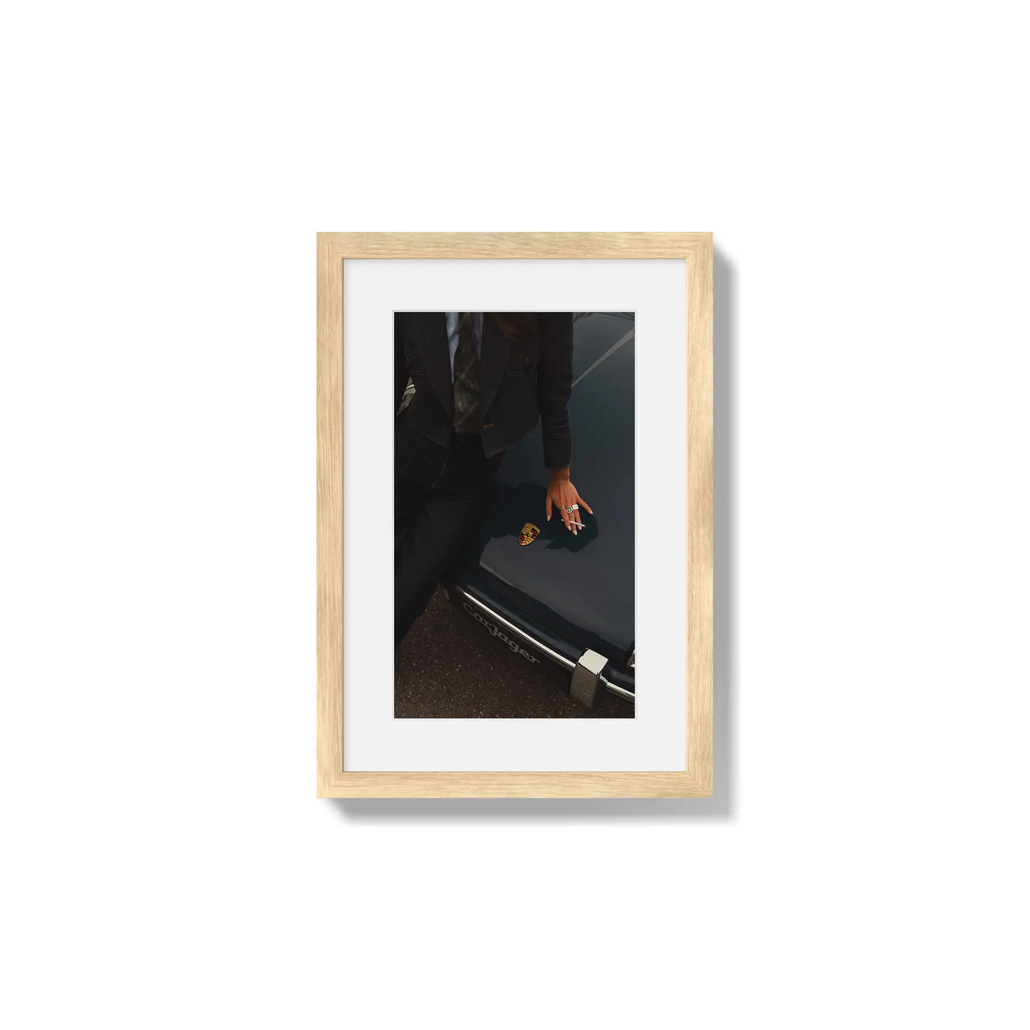 Unsere Small-, Medium- und Large-Drucke kommen in klassischen Holzrahmen mit einem 5 cm breiten Passepartout, das das Foto umgibt und so für eine edle Optik sorgt.