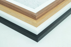 Die Rahmen sind in den Farben Schwarz, Weiß, Eiche und Nussbaum erhältlich und verleihen jedem Kunstwerk einen zeitlosen, hochwertigen Charakter.