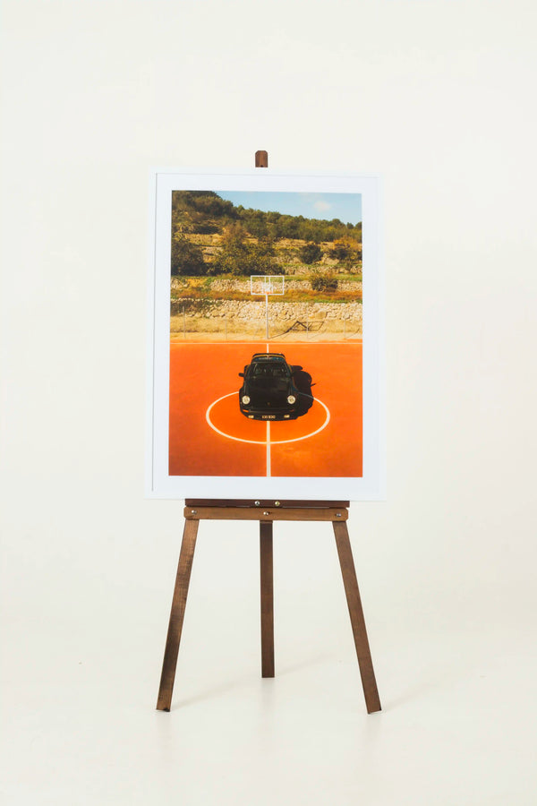 "Hoop Dreams" – Eine außergewöhnliche Komposition. Ein klassischer Porsche Sportwagen steht perfekt im Mittelpunkt eines Basketballplatzes, als wäre er bereit für das ultimative Spiel. Die markanten Kontraste zwischen dem tiefen Rot des Asphalts, der natürlichen Steinmauer und dem glänzenden Lack des Autos schaffen eine faszinierende visuelle Spannung. „Hoop Dreams“ spielt mit der Idee von Bewegung, Stillstand und Klasse.