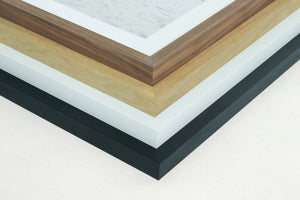 Die Rahmen sind in den Farben Schwarz, Weiß, Eiche und Nussbaum erhältlich und verleihen jedem Kunstwerk einen zeitlosen, hochwertigen Charakter.