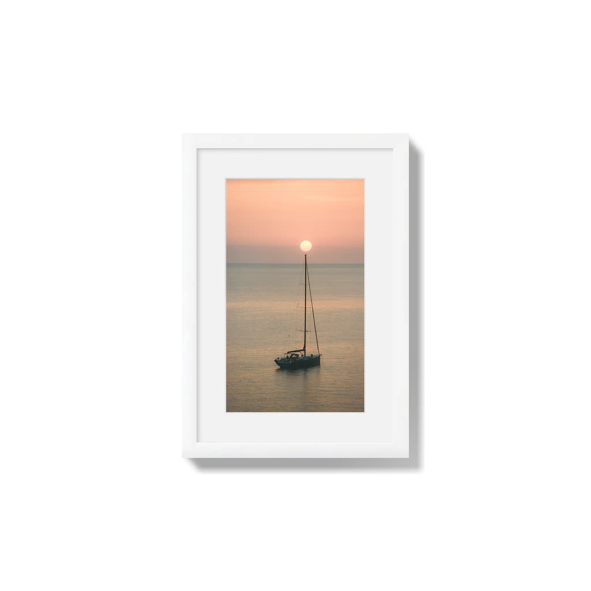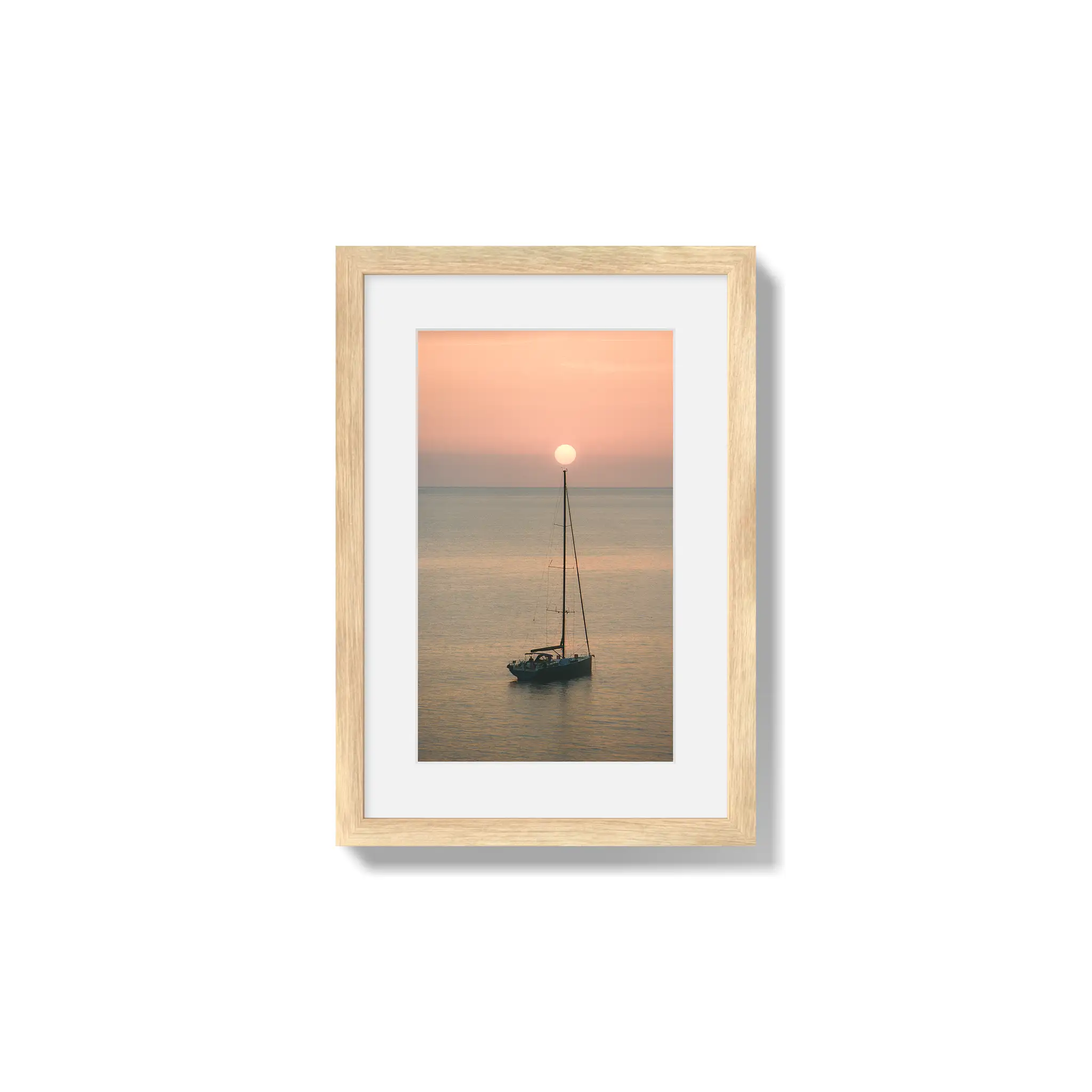 Unsere Small-, Medium- und Large-Drucke kommen in klassischen Holzrahmen mit einem 5 cm breiten Passepartout, das das Foto umgibt und so für eine edle Optik sorgt.