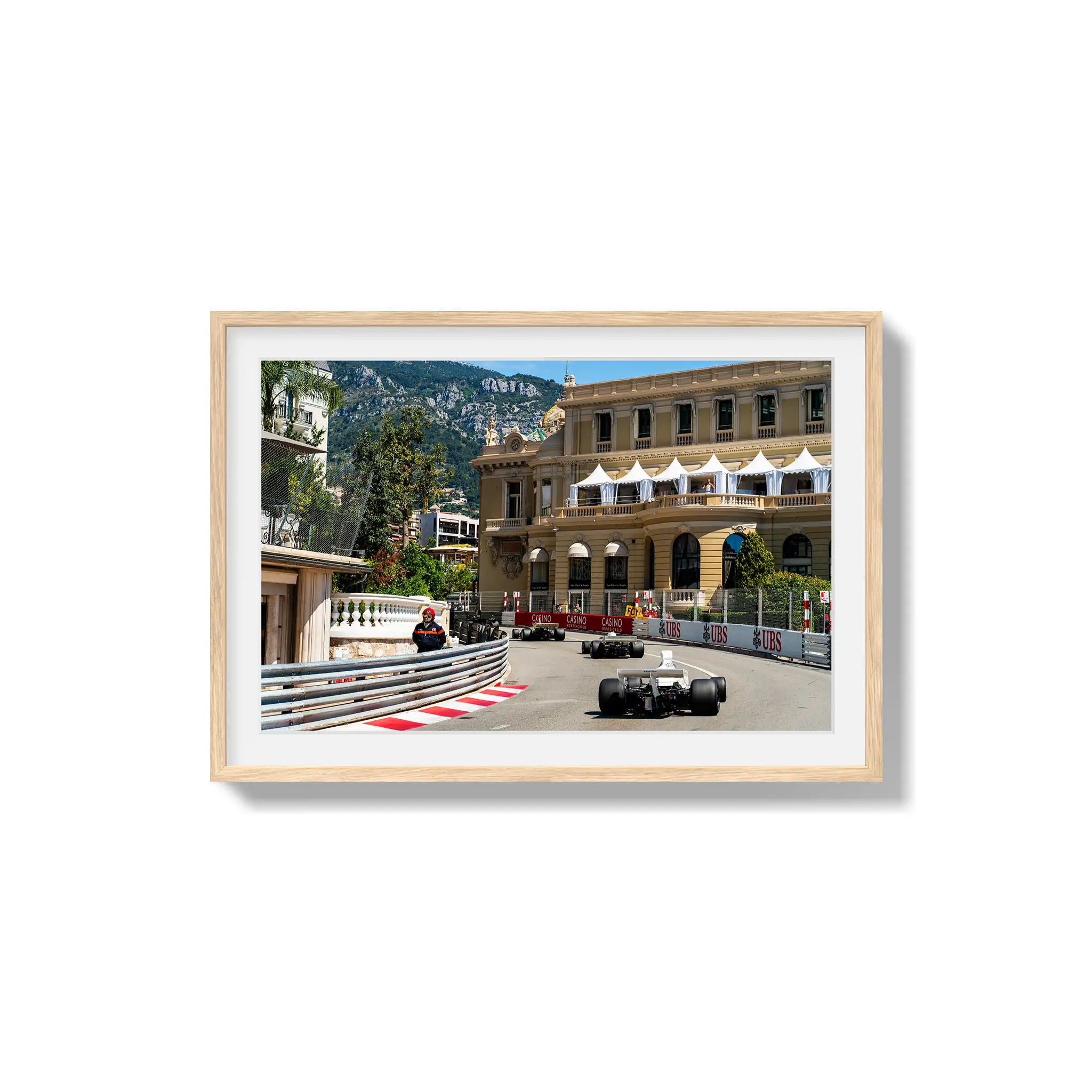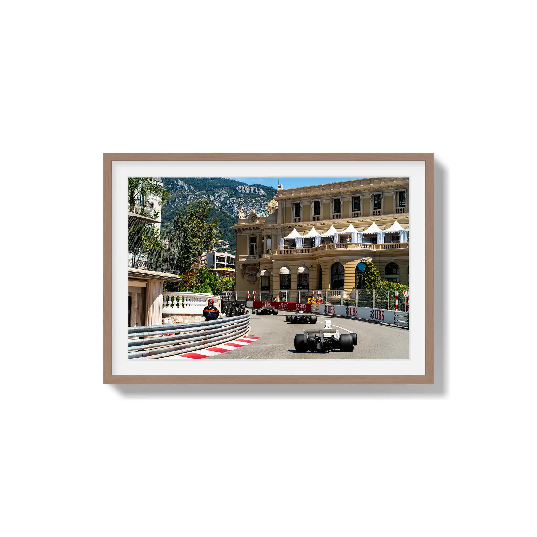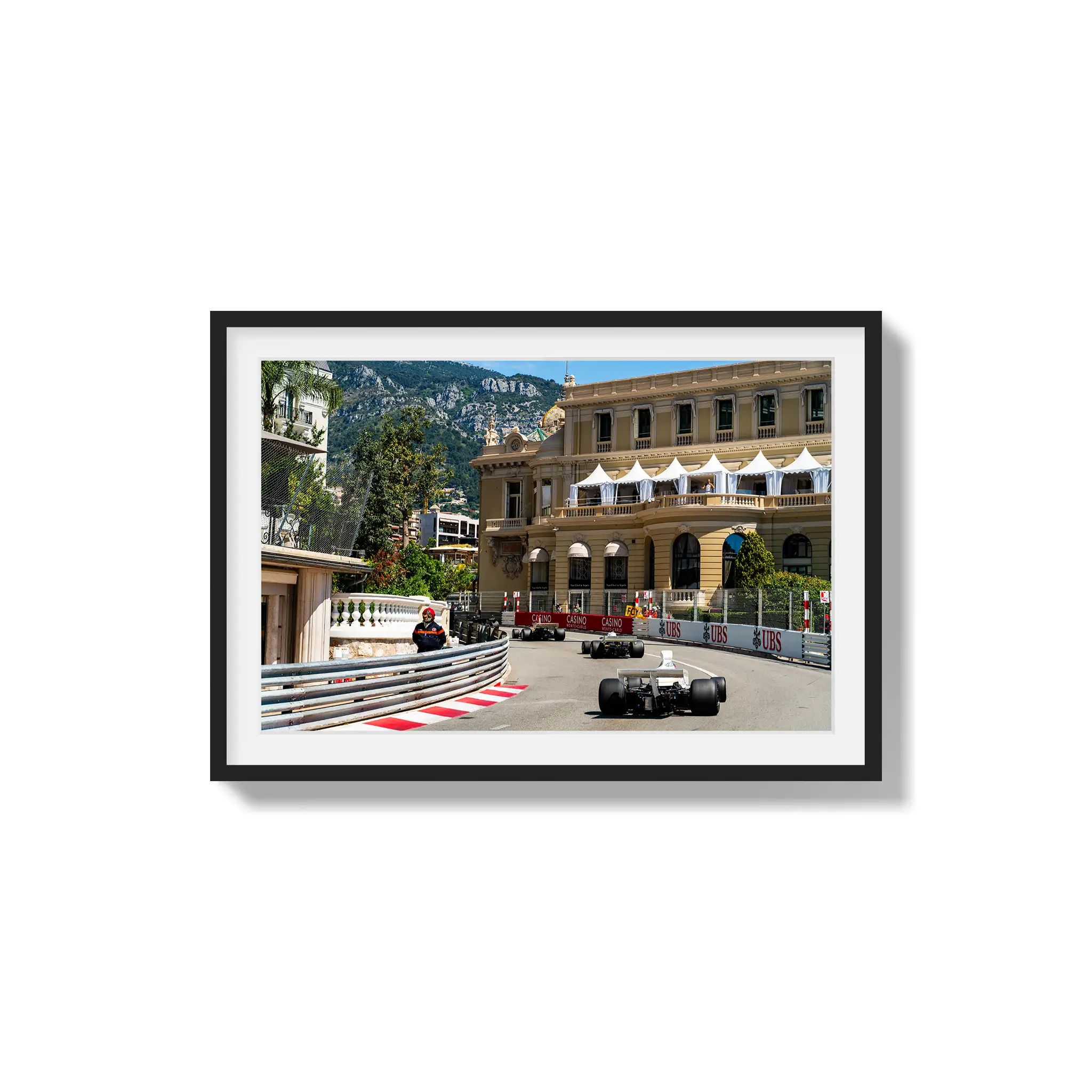 Monaco Grand Prix by Luca Martini pays tribute to one of the most prestigious races in the world. Set against the backdrop of the Casino de Monte-Carlo, Martini captures the essence of vintage motorsport — where elegance meets adrenaline.