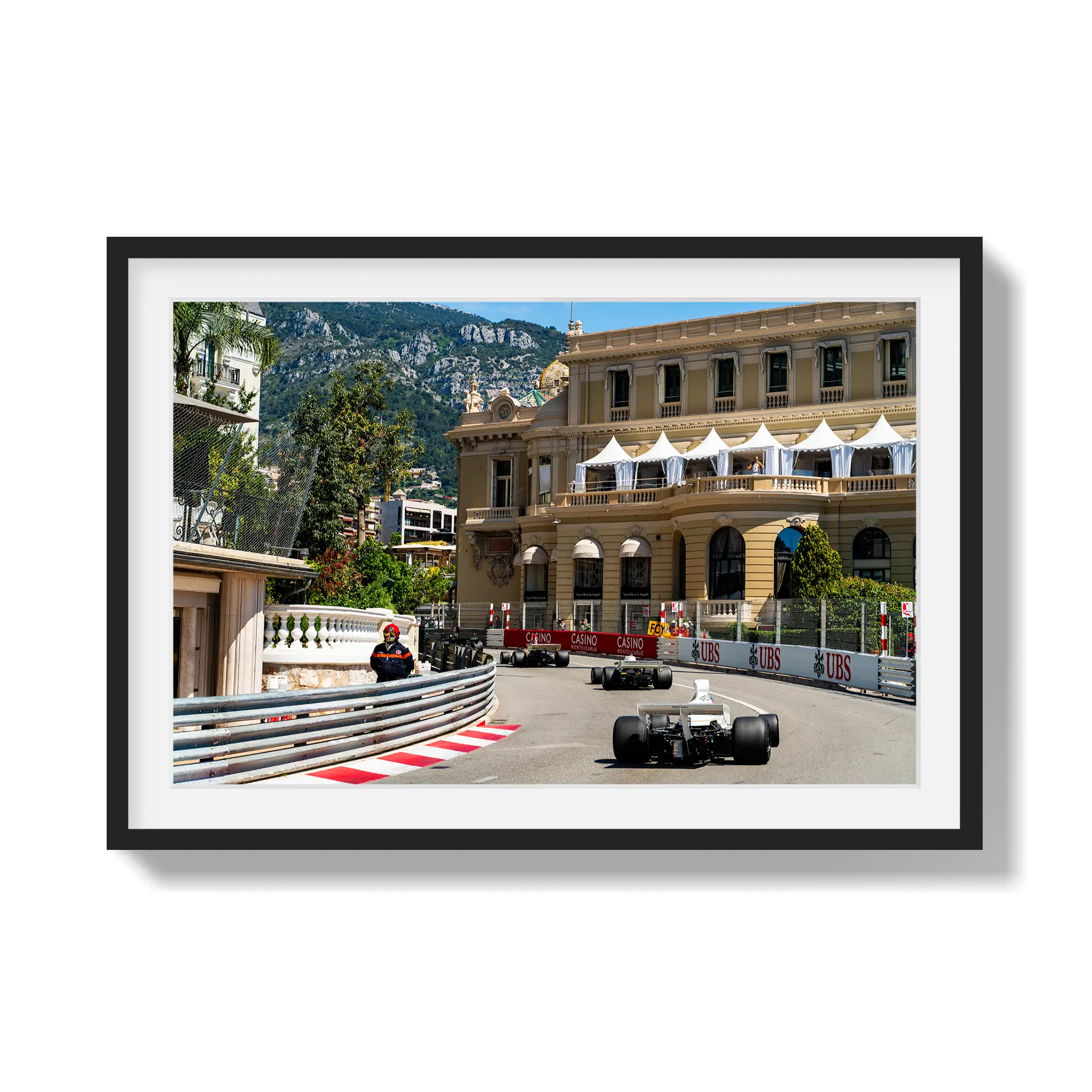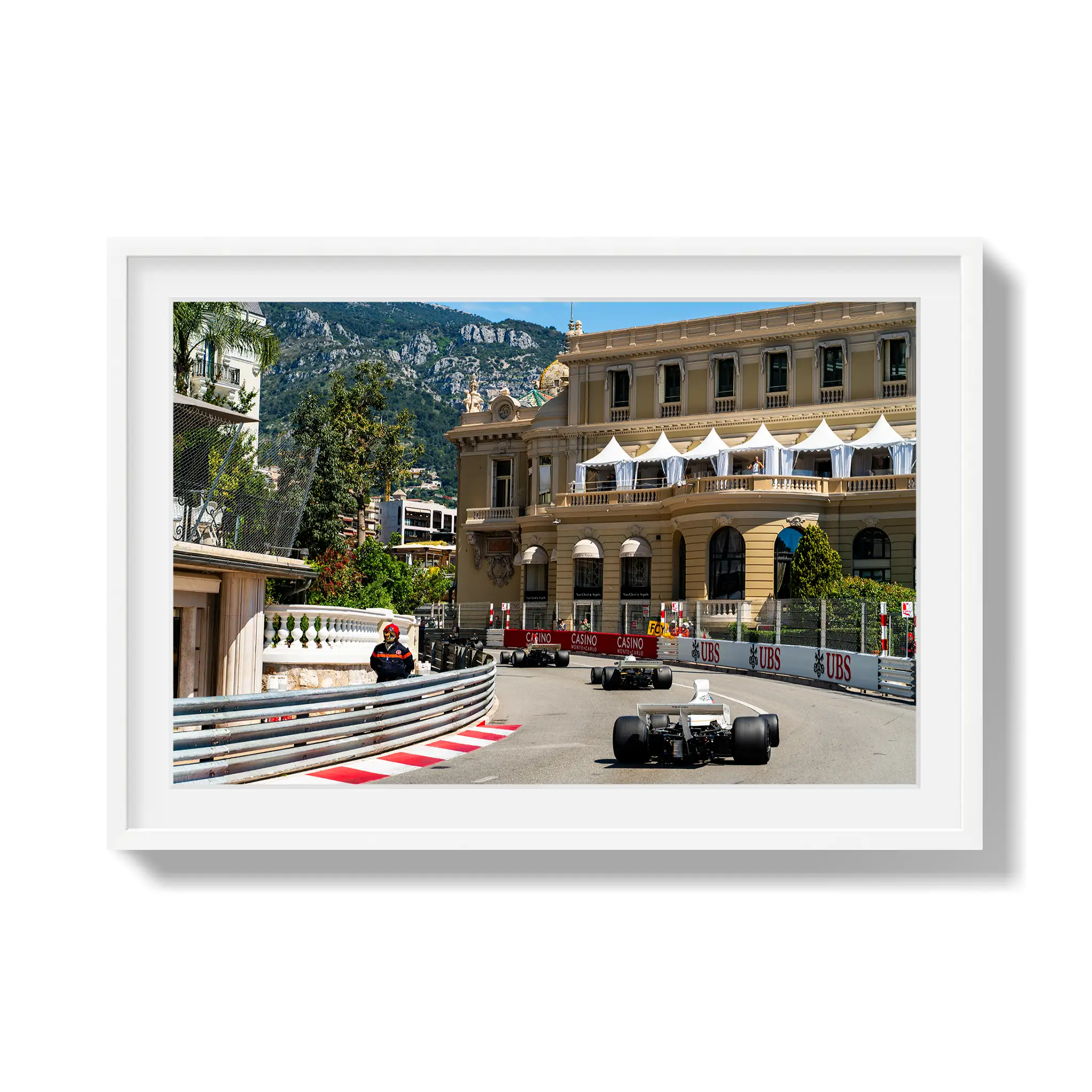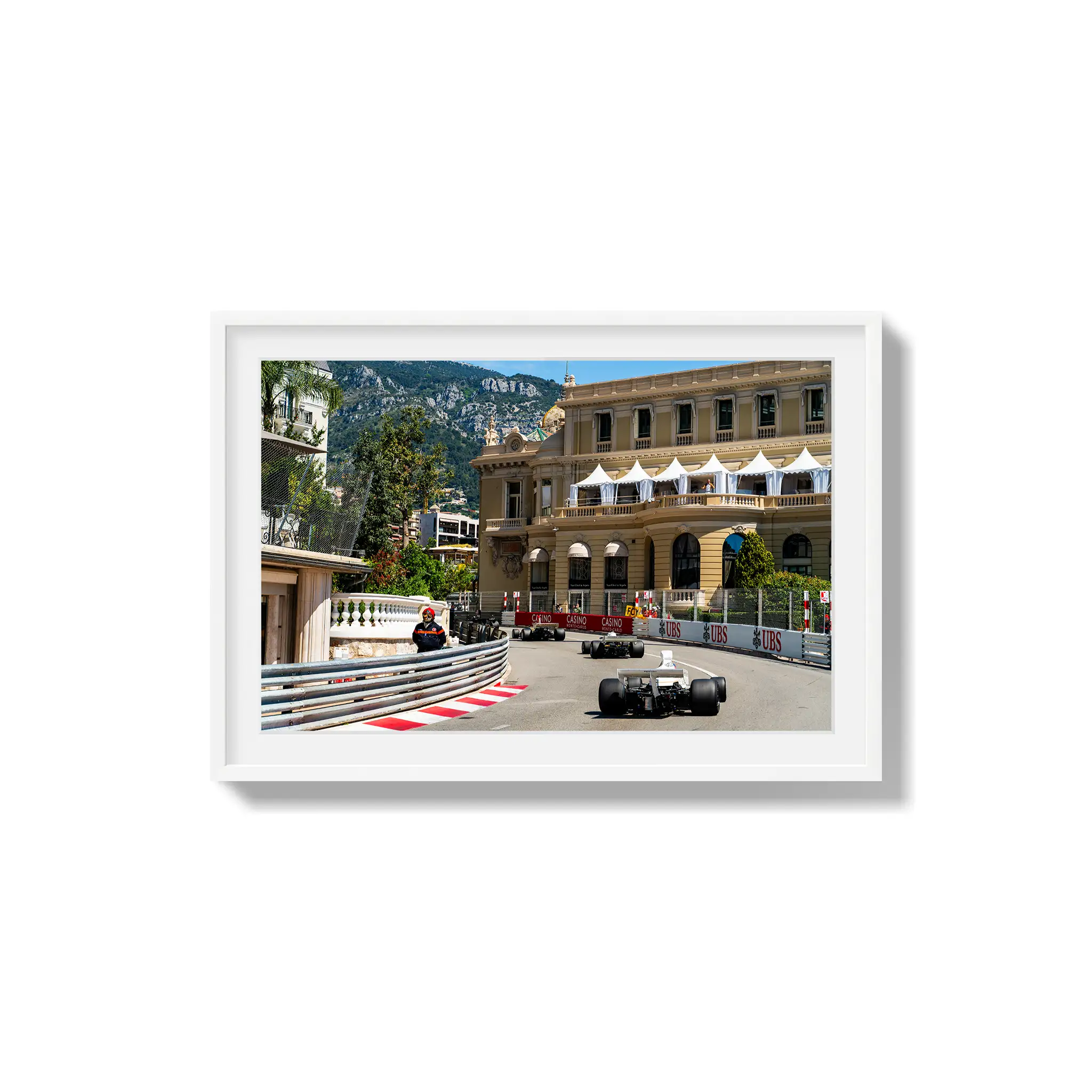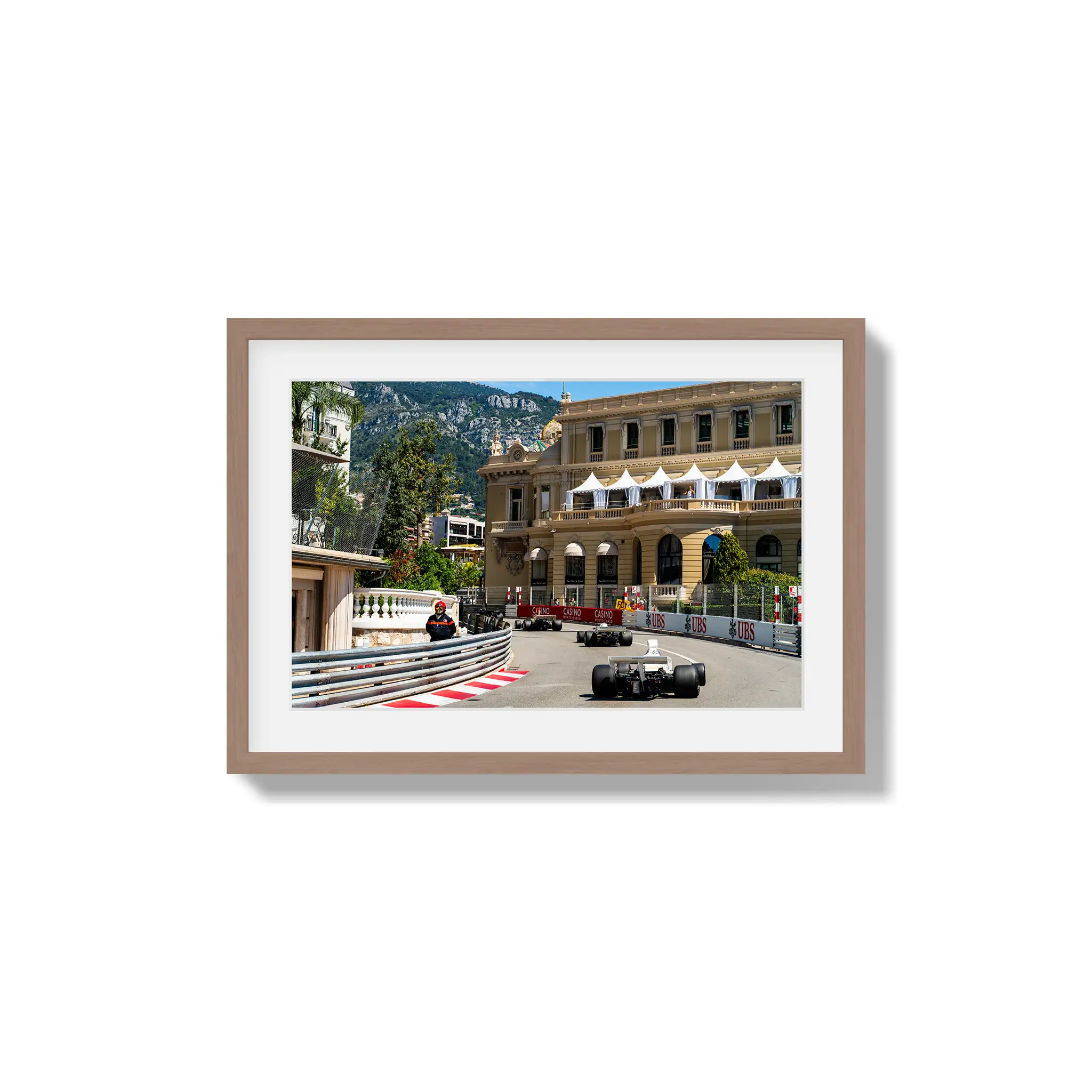 Monaco Grand Prix by Luca Martini pays tribute to one of the most prestigious races in the world. Set against the backdrop of the Casino de Monte-Carlo, Martini captures the essence of vintage motorsport — where elegance meets adrenaline.
